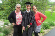 Alex with Grandma Linda, Grandpa Bill and Hannah. Both Grandmothers gave Alex a standing ovation when he received his diploma!