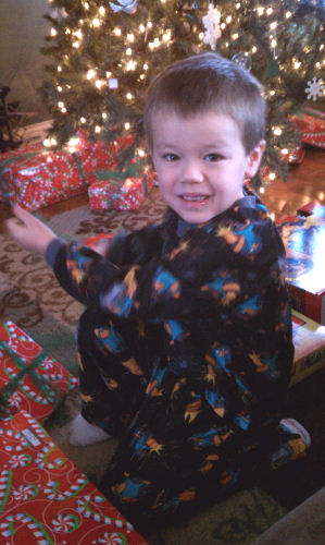 The fireplace....the tree....Owen and Brendan were very happy to be at "Kyle's House"