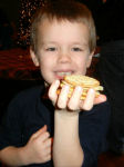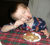 Alex enjoying an "instant dessert", as Grandpa Terry calls it....Hannah and Owen playing the new Wii