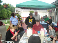 Colleen checking out the Cubs book....Jim, Sue and Terry....Aunt Mary