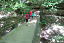 Crossing a bridge....Erin with her carrot art....Trail 3 was crowded....Jean and her shoes