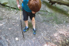 Trail 6 was not crowded....Brendan spotted something right away....Tiny fish that Brendan found