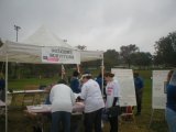The bandstand....Jean, Laura and Kathy open cases and cases of Fiji water for the runners and walkers.