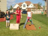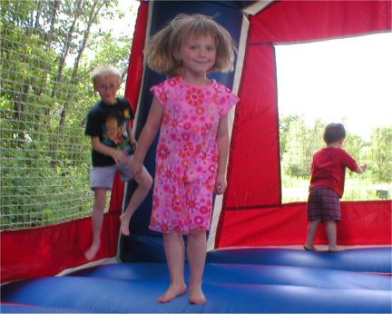 The kids had a blast in the jumpy thingy. Andrew Leamon, Alex and Hannah Hines.