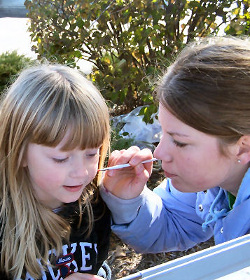 Brendan sat as still as a statue while having a ghost painted on his face.