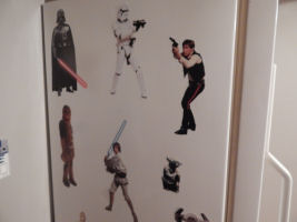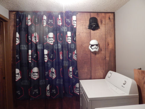 Mini stickers under the Death Star on the side of the washer....I painted the old waste basket