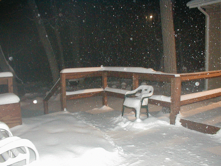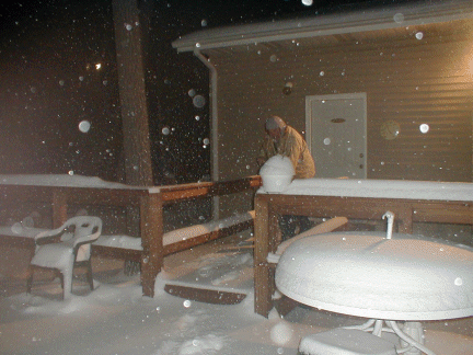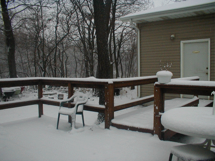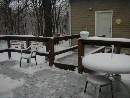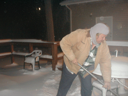Terry took a vacation day and returned home. He shoveled the deck just before the sleet fell.