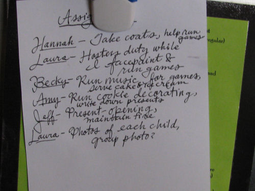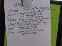 Jean was ready for us with notes on serving dishes and a list of chores....Laura