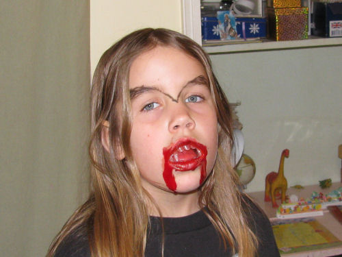 Erin as a Princess....Daphne as a Vampire....Hannah as Cheerleader victim of a Vampire