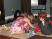 Brendan eating sprinkles....Kathy and Jim....Brandon, Hailey and Amy....Playing a game