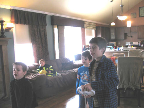Brandon, Jake, Brendan, Jean and Owen....Opening more gifts