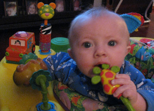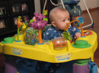 Auntie Jeannie gave Tessa her exersaucer and Tess loves it...it's real chewy!