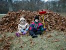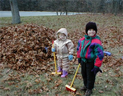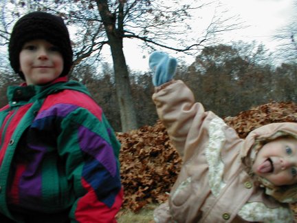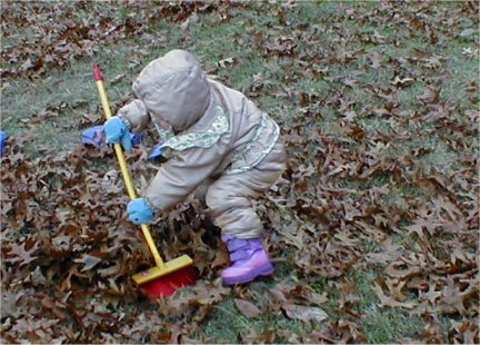 Hannah chasing Quincy with her broom and acting silly in the last picture.