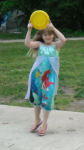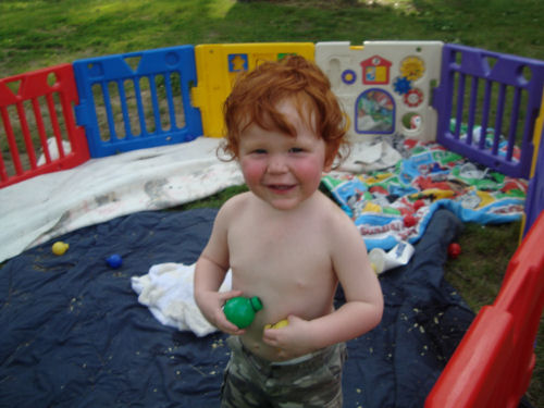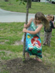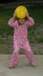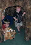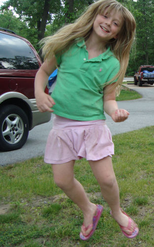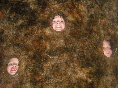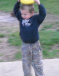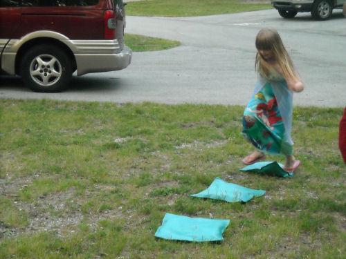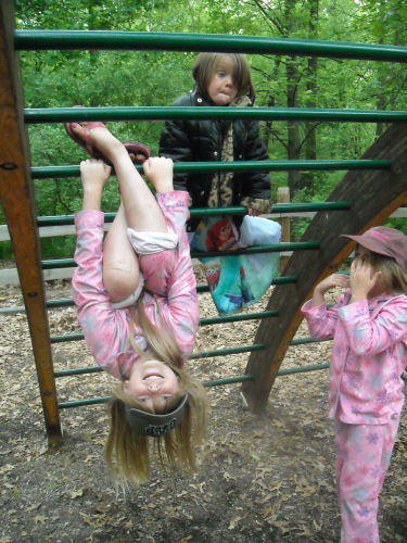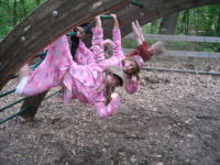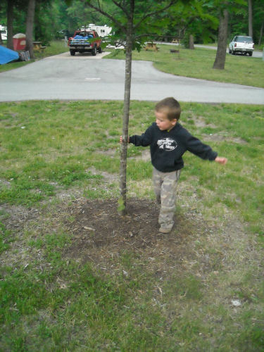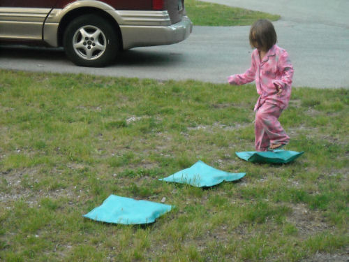 Spinning around a tree...running across the sit-upons that Hannah and Kathy made