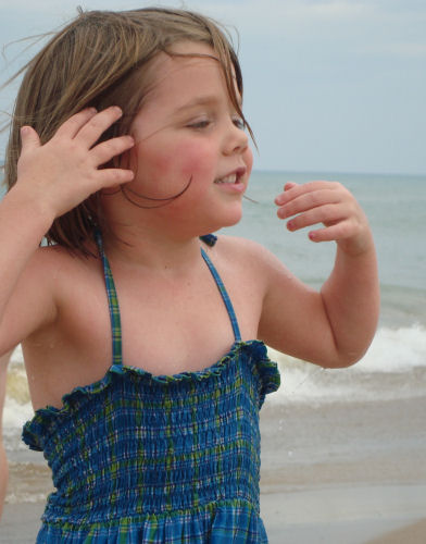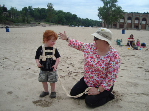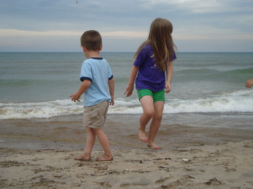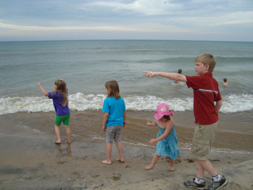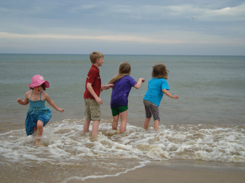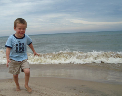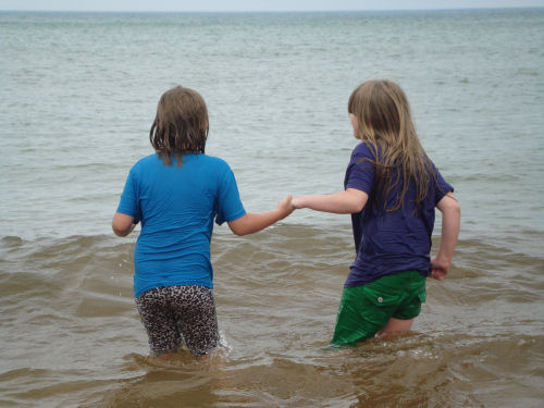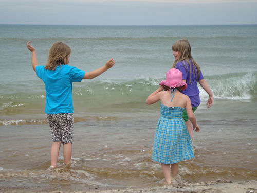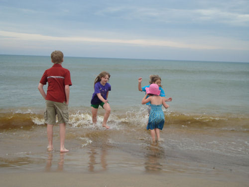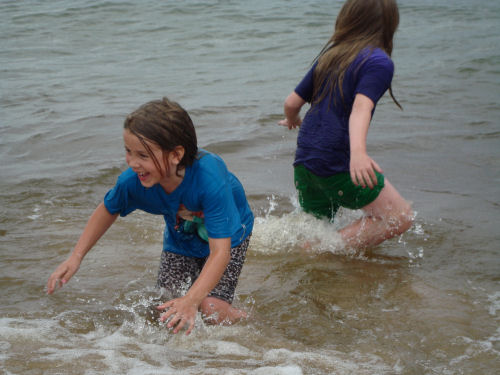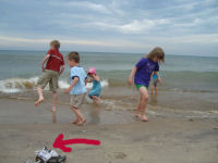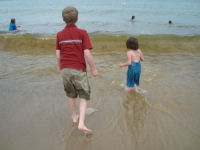 Wow, look at the waves..."Why yes, you can get your feet wet. But that's all because the water is very cold"