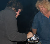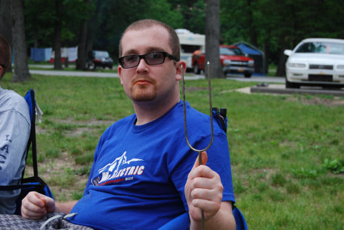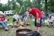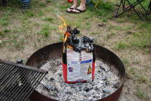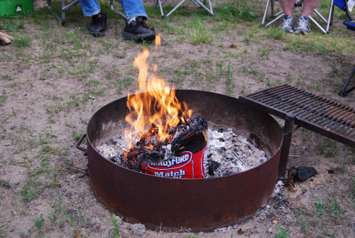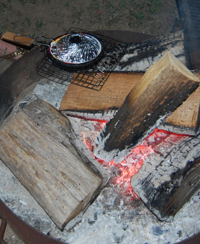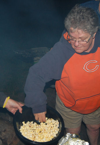 Kathy tried the Jiffy Pop and had no luck so Terry slammed the thing in the fire and we got some nice popcorn