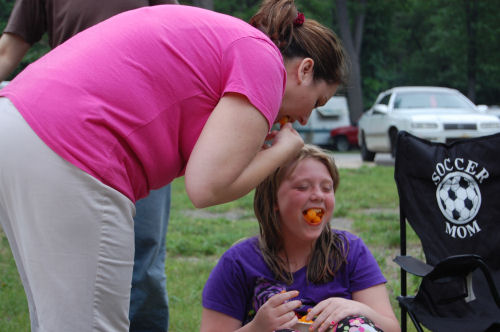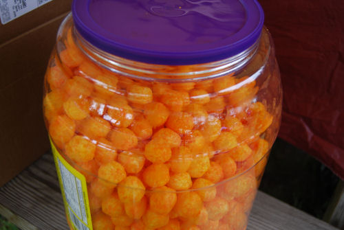 Alex and Matt....Nicole and Hannah dig into the giant jar of orange puffs that Pat brought