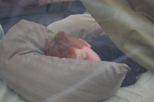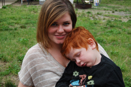 Nap time for Owie....first on Alissa and then on Grandma Kathy's cot