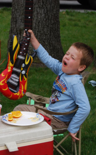 Brendan playing air guitar during lunch....Brendan....Brendan's shadow