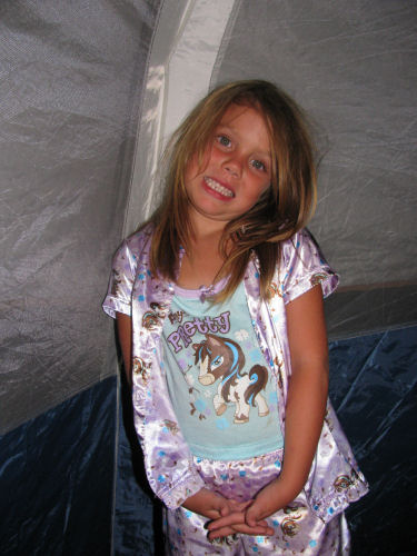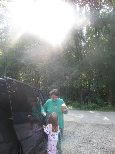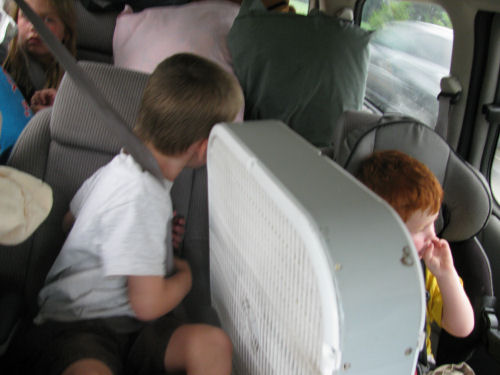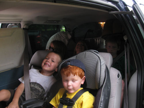 We loaded Jean's mini-van with 2 adults, 5 kids, 2 tents, a canopy, a cooler, a stove, chairs, pillows, blankets, clothes and a fan.