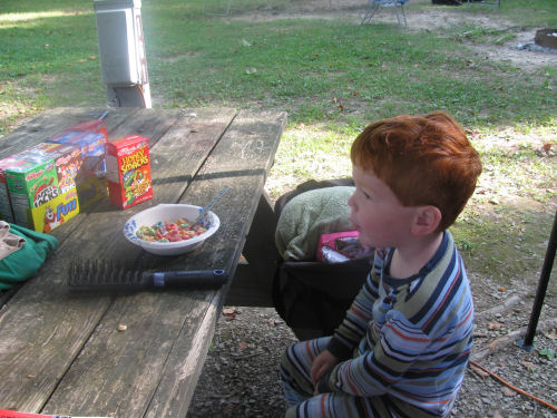 Jean put whipped cream on her fancy coffee and gave Erin a mouthful....Owen with his Fruit Loops....This leaf fell on Daphne's lap and became her Lucky Leaf