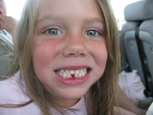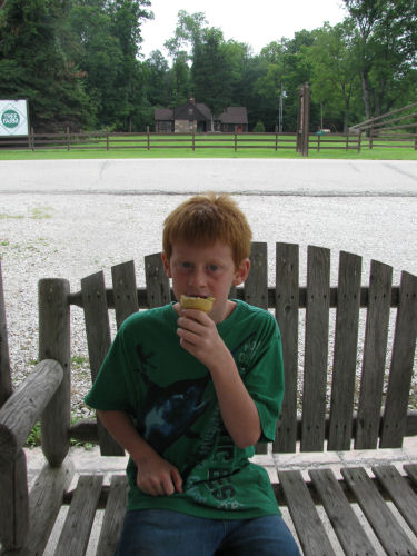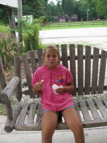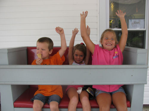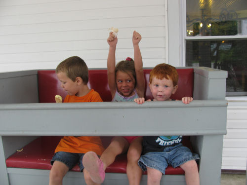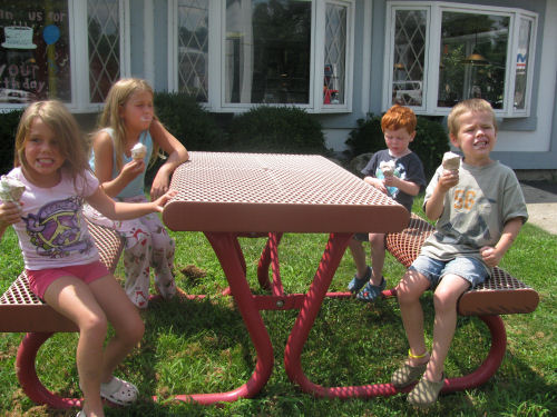 Eating the ice cream outside....Erin lost her first tooth on the ride home!