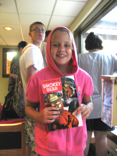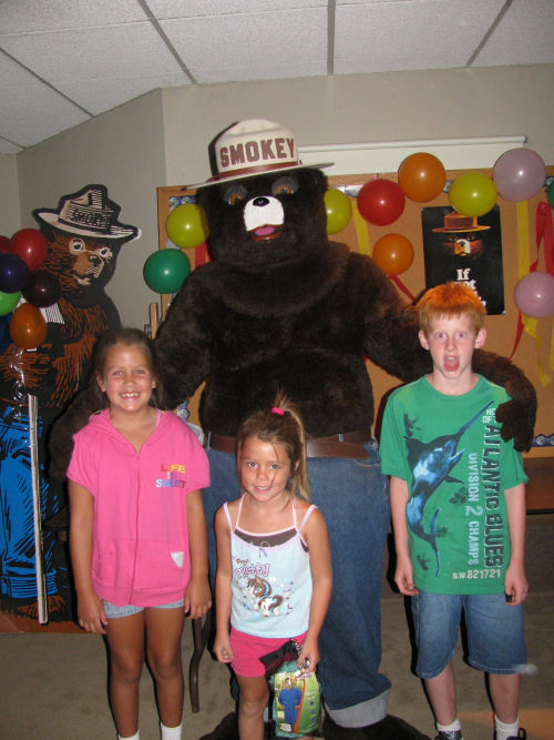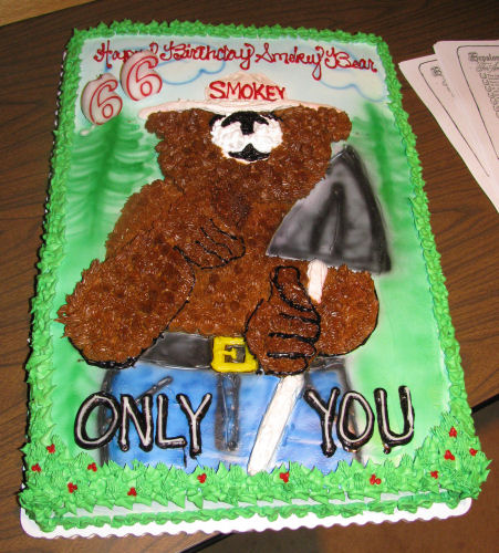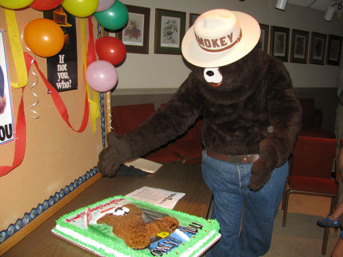 Then Smokey The Bear came out to see his birthday cake because it was his birthday!