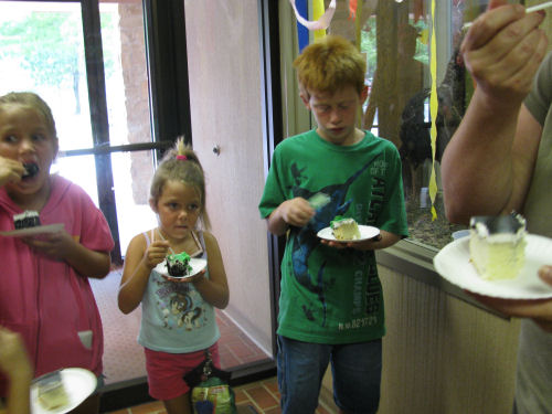 We all got cake and the kids got a fishing bobber, coloring book and poster. Fun time.
