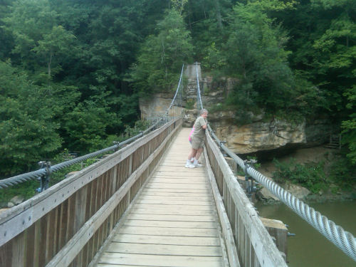 Crossing the suspension bridge to get to the great hiking.