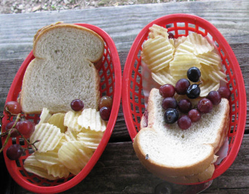 Stopping for lunch and fun in the play room