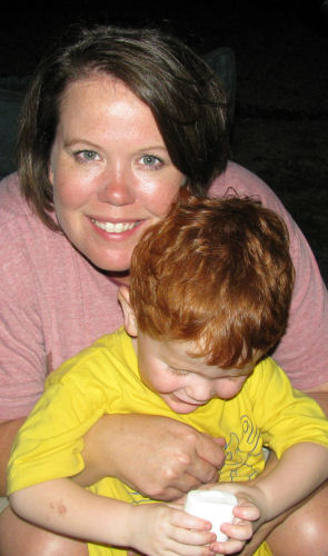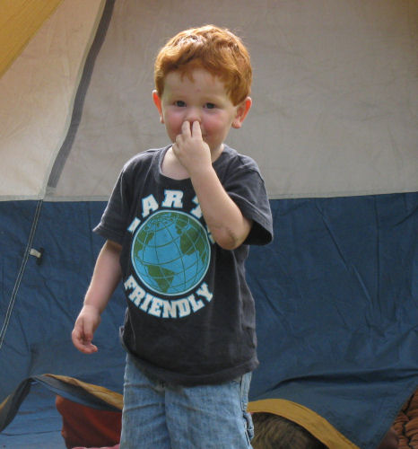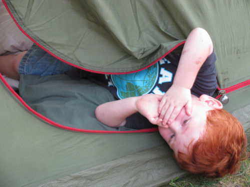 Owen inside and outside the tent....Grandma Kathy demonstrates how to heat up her travel warmies.