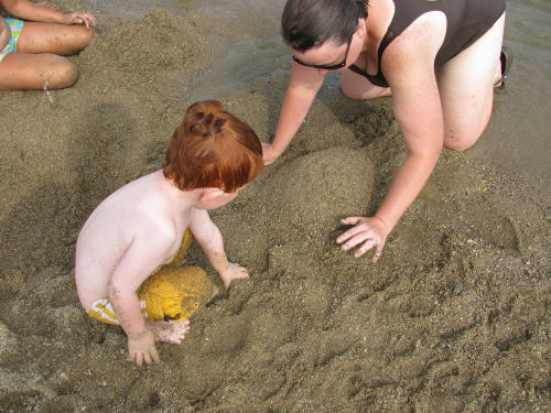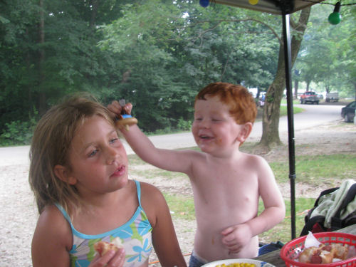 Hot dogs for dinner....Daphne was very patient while Owen played with her.