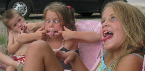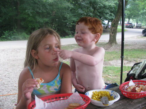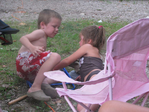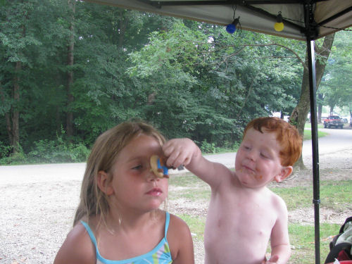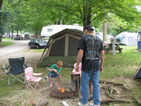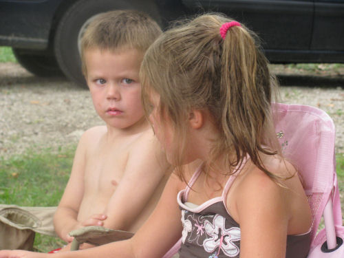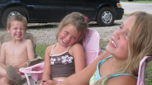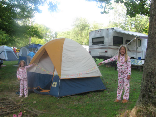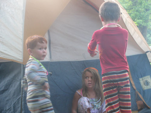 The campsite and the camping kids: Brendan, Erin, Hunter, Daphne and Owen.