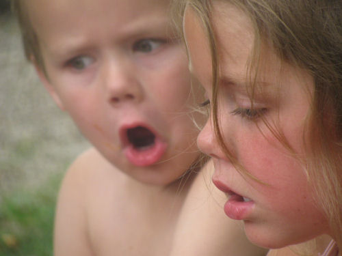 Brendan and Erin had a small disagreement so Jean told them to hug it out. When they did, they both fell to the ground....and laughed.