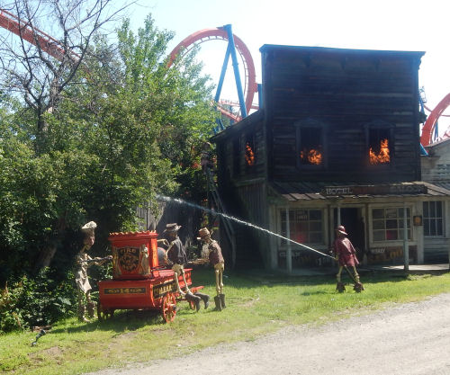 A woman with a shotgun....The saloon is on fire!
