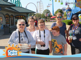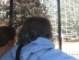 Brendan, Owen and I didn't ride coasters. Erin went on one coaster. Jean went on three coasters.. Daphne went on 12