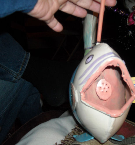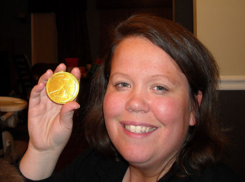 Jean, Brendan, Kathy and Bill....Daphne put a rubber duck on Laura's chair and Laura sat on it....Jean won the game and the golden coin.