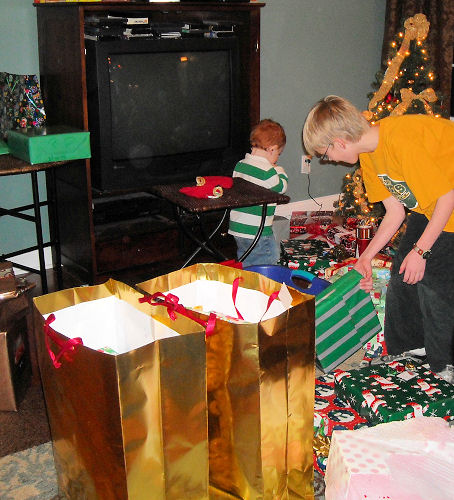 Opening a mountain of presents