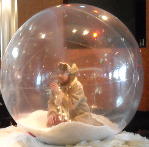 At the airport in Nashville, this guy was singing in a snow globe!