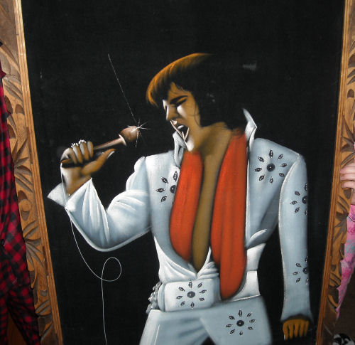 Terry admires his new velvet painting of Elvis