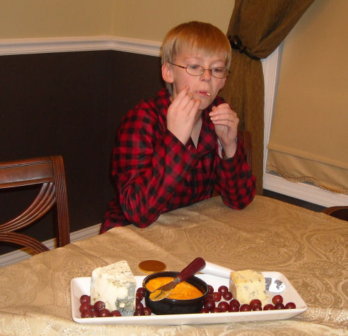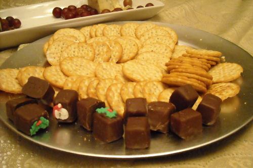 After we exchanged lottery tickets and had an auction, we had some fancy cheese, grapes, crackers and candy.