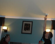 Playing with Alex's wall climbing car....Bill tried it on the slanted ceiling and it didn't work