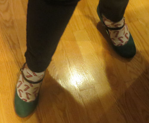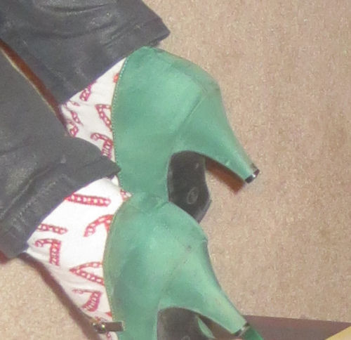 Jean's festive shoes.....a new idea starts....taking pictures of cell phones over the ages