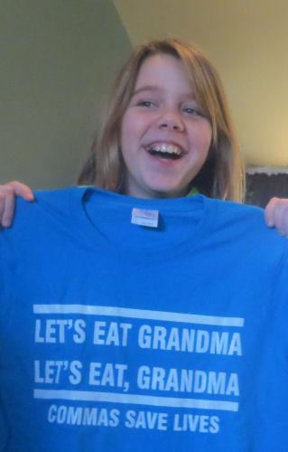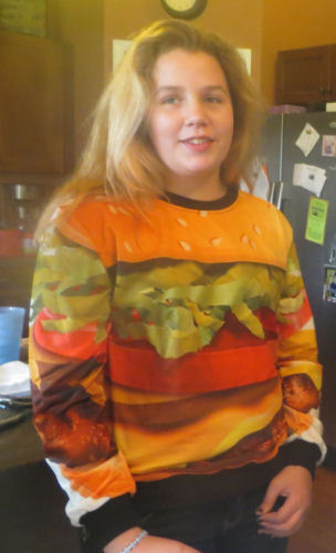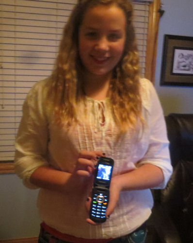 Hannah shows the prize for winning the contest
