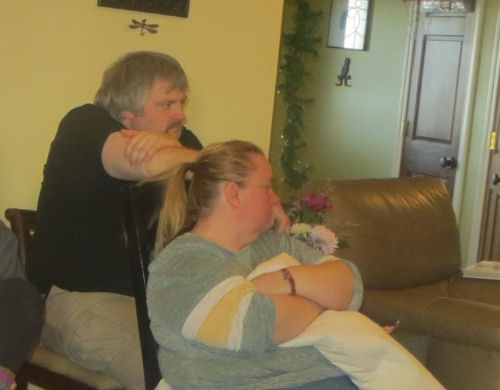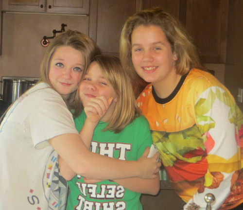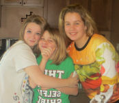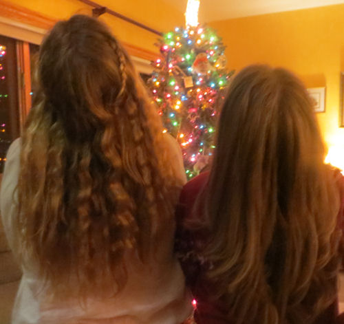 Daphne and Hannah compare their hair length....Kathy