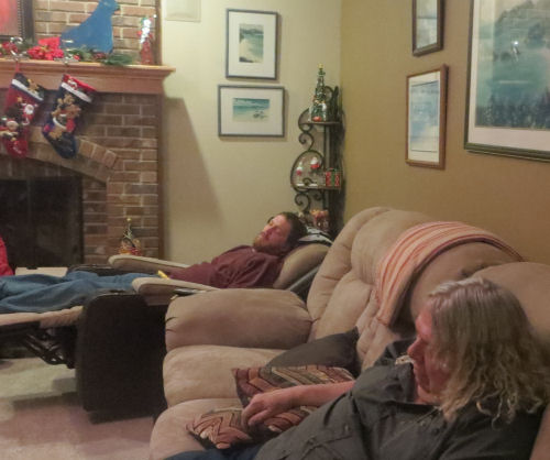 Great time singing Christmas carols.....Jeff and Terry grab a quick nap