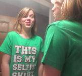Hannah, Erin and Daphne....Hannah's friend Brianna watches Hannah and Erin take a selfie....Daphne and Brianna