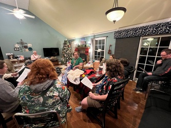 Out Great Hostess....Jean gives Brian a gift (a projector he left in Galena)....Brian photobombs Daphne and James