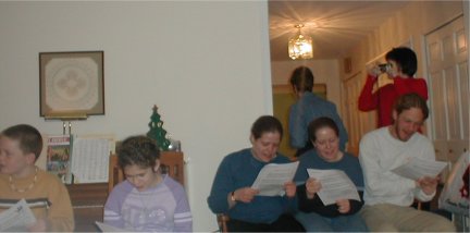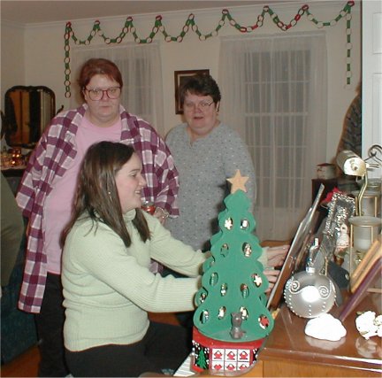 Mary and Eileen watch Bridget at the piano....Kathy and Terry....Jeans sings a solo