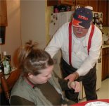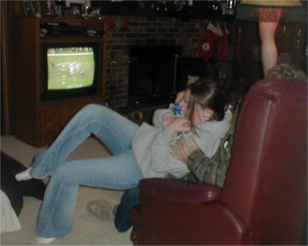 Rowdiness! Pat sat on Terry who was in his chair and then